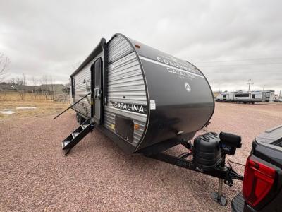 Each Catalina Legacy travel trailer by Coachmen is constructed with a cambered structural steel I-beam frame for added strength and support, plus an enclosed and fully sealed corrugated underbelly to extend your camping season. There is also a seamless Alpha roof membrane, R-7 insulation throughout, full length frame outriggers, plus many more durable construction materials. You will love the 6' 9" interior height, along with Congoleum woodplank linoleum flooring, solid surface kitchen countertops, and hard valance window treatments. Choose a Catalina Legacy today!