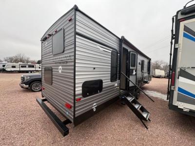 The bunk beds are perfect for the crew: kids, friends, or family, everyone’s comfy. The trundle sofa is a great spot for extra chill time or accommodating guests. The dinette is ideal for meals, homework, or game nights. And with the entertainment center, movie nights are a breeze. The walk-in closet/pantry gives you plenty of space to stash snacks, drinks, and more. The kitchen’s equipped with a refrigerator, microwave, and sink, perfect for easy meals and quick bites. Further, the walk-through bathroom is super handy, so you can refresh and get ready without fuss. In addition, the queen bed is perfect for having comfy nights ahead, and the overhead cabinets, dresser, and closet are ideal for keeping things tidy and organized.